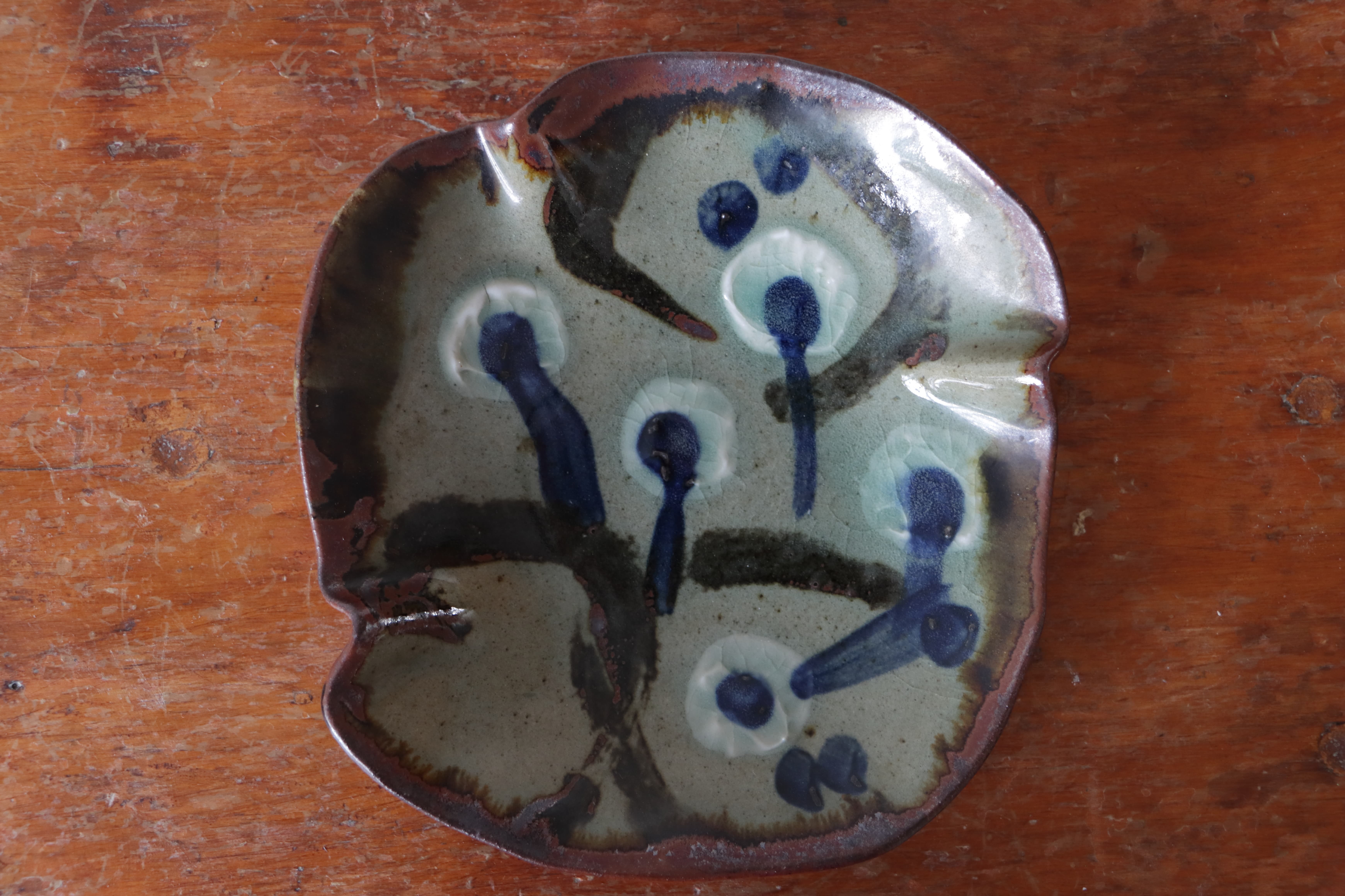 Shallow bowl with deep blue and ochre glazes, collection of Eban and Mercedes Namer, Ottawa.